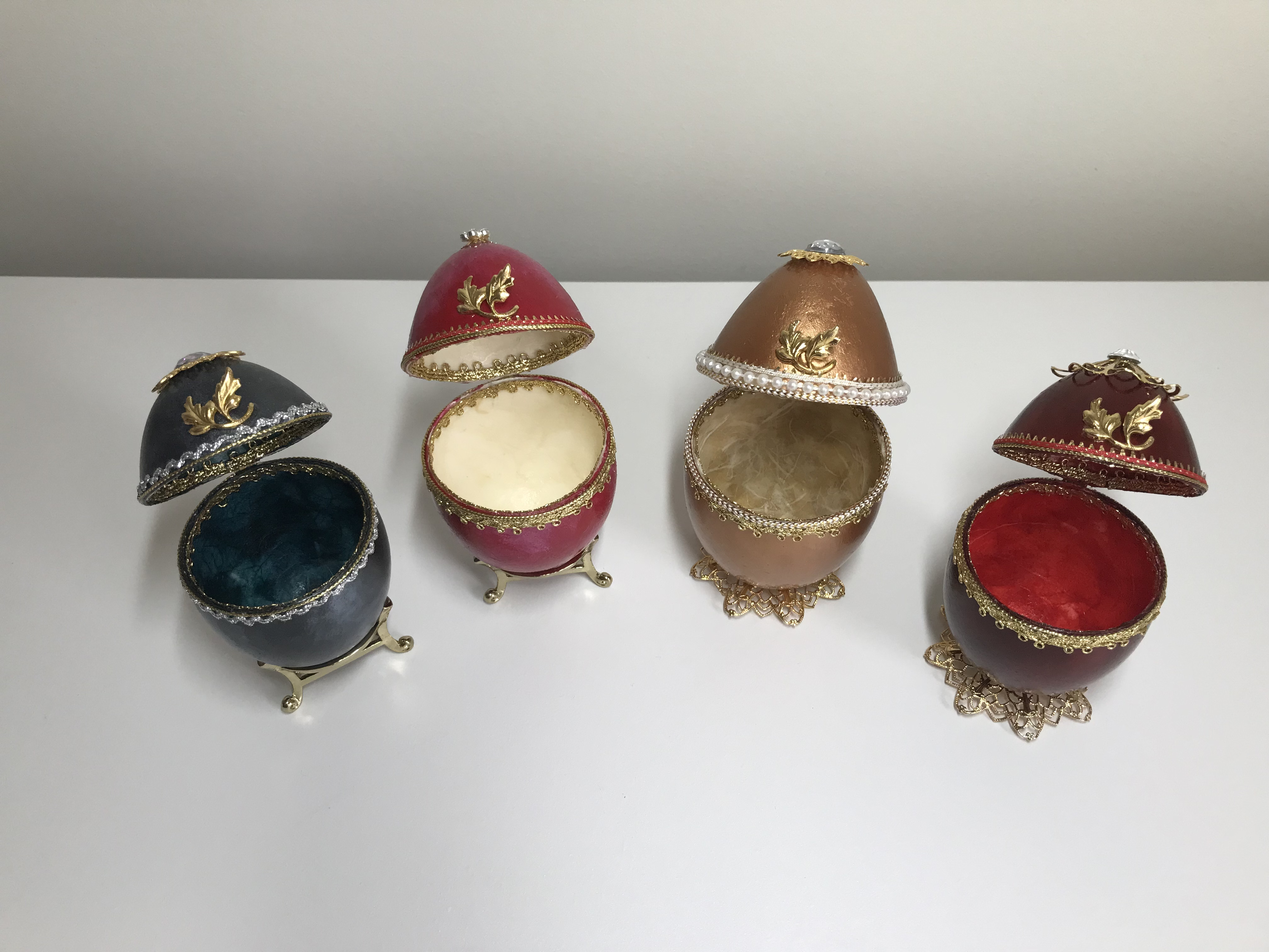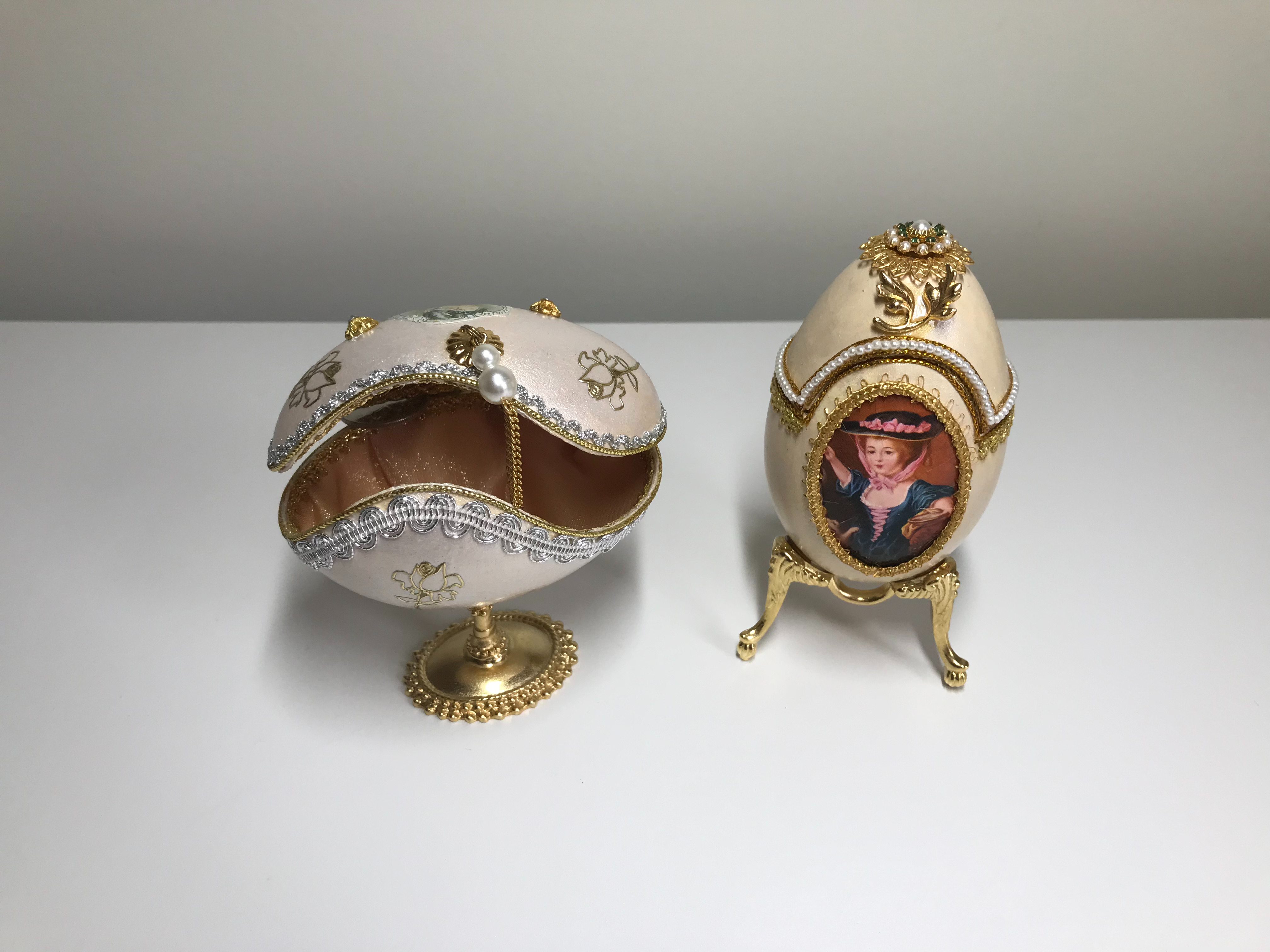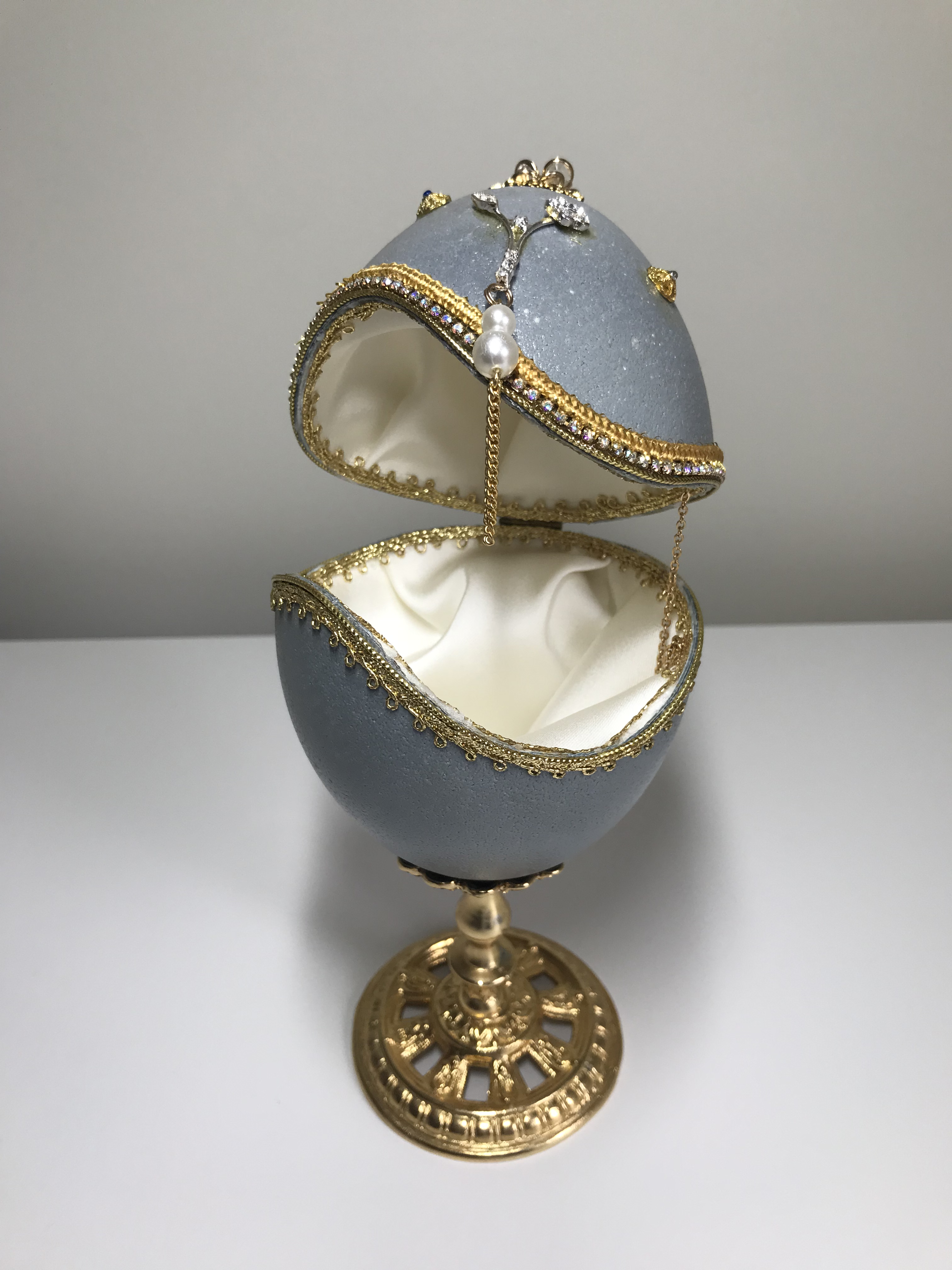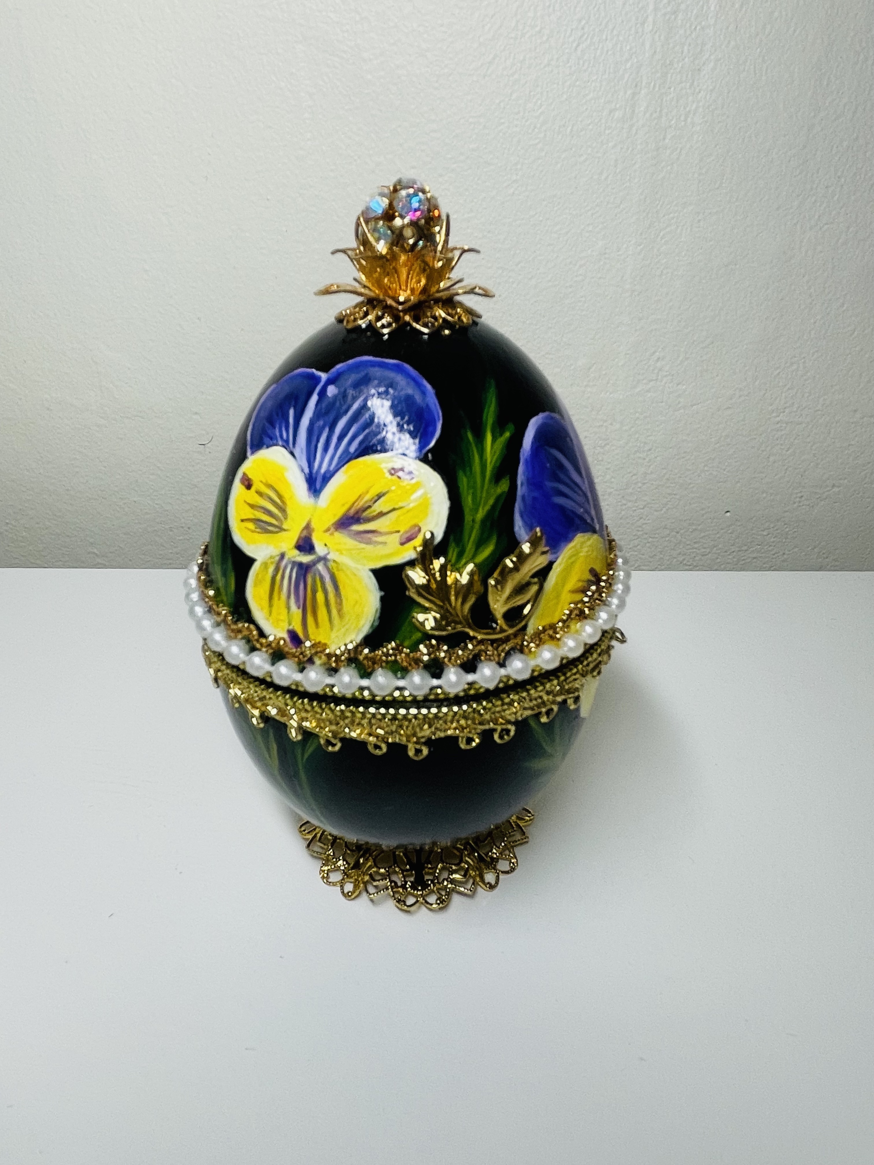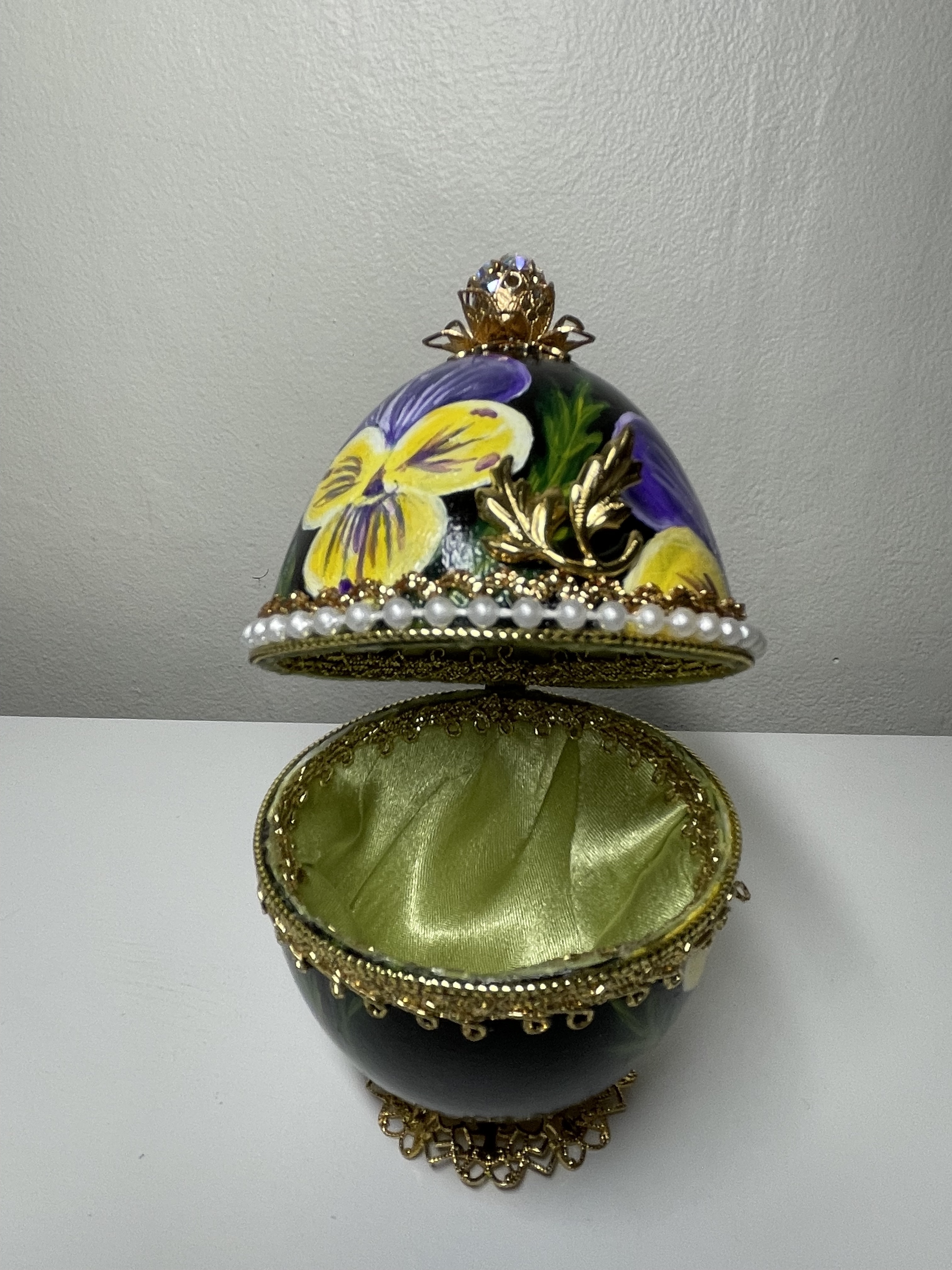 Coquilles Horloges : 65$ Lampes : 120$ Crèches : 65$ – 125$ VENDU Coffret à bijoux : oeuf d’émeu 65$, oeuf d’oie 45$